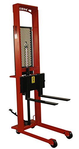 Floor locks safety screen and foot guard are standard on all models. Forks touch the floor on all fork models. Standard line features one piece platform guide rail. 1" thick x 3" wide x 25" long forks. Adjustable span up to 25". 15" load center. 25.5" overall width; 40" depth. Base leg span - 15" inside 21" outside. Material of Construction: Steel. Made in USA. Front Wheel Size: 5. Front Wheel Type: Phenolic. Caster Size: 4. Caster Type: Phenolic. Raised Height: 76. Lowered Height: 0. Manual. Cubic Ft: 61.73. Handle Type: Continuous. Floor lock: Yes. Warranty: 5 Year Weld Guarantee. Dimensions: 25.5"W x 94"H x 44.5"D.
