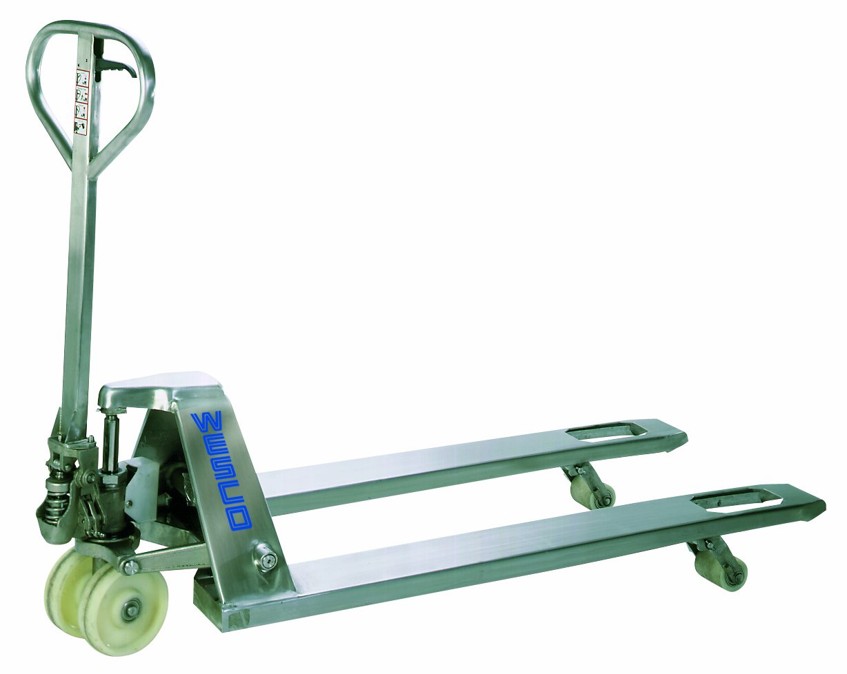 The Wesco Stainless Steel Pallet Truck is specialized for use in the food industry as well as areas in which corrosive solutions are used.