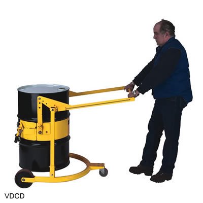 Material of Construction: Steel. Made in China. Front Wheel Size: 8". Front Wheel Type: Polyurethane. Caster Size: 4. Caster Type: Polyurethane. Raised Height: 12. Lowered Height: 9.25. Powered/Manual: Manual. Agency App/Cert: None. Assembly Require. Cubic Ft: 49.09. Economically priced. Three height adjustments: 9.25" 10.625" and 12". Vertical and horizontal locking positions. Polyurethane wheels and casters. 8" x 2" wheels and 4" x 1.25" caster. Handle Type: Continuous . Floor lock: None. Capacity: Full Drum - 800 Half Drum - 500. Dimensions: 35" W x 65.5" H x 35" D.
