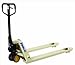 Forks are 42" long and 21" apart. Adjustable fork connecting rods. Overload bypass. Rubber coated handle. Entry and Exit Rollers. Material of Construction: Steel. Made in China. Front Wheel Size: 7. Front Wheel Type: Moldon Polyurethane. Rear Wheel Size: 3. Rear Wheel Type: Moldon Polyurethane. Raised Height: 7.75. Lowered Height: 2.9. Manual. Cubic Ft: 33.42. Handle Type: Loop Handle. Warranty: 2 Year Pump Warranty. Dimension: 21"W x 48.25"H x 57"D.