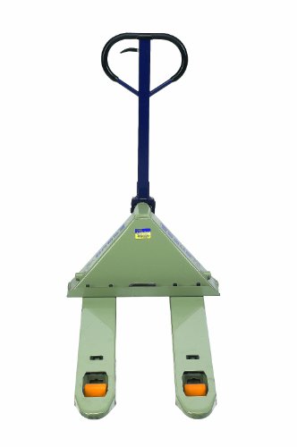 Adjustable fork width can be set from 21" to 27" or anywhere in between. Just loosen and reset front and rear adjusting bolts. Forks 48" long. US Patent No. 6540241. Pump overload bypass. Exit Rollers. Tapered fork tips. Rubber Coated Handle. 200° steering. 8 gauge 6" wide forks. Adjustable fork tie rods. Material of Construction: Steel. Made in Taiwan. Front Wheel Size: 7. Front Wheel Type: Moldon Polyurethane. Rear Wheel Size: 3. Rear Wheel Type: Moldon Polyurethane. Raised Height: 7.75. Lowered Height: 3. Manual. Cubic Ft: 44.8. Handle Type: Loop Handle. Warranty: 5 Year Pump Warrenty. Dimension: 27"W x 47"H x 61"D.