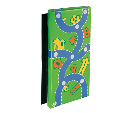 Dimensions: 38'' L x 19'' W x 2'' Thickness. Made from high density foam with jersey-lined vinyl covers. Fire safety standards: CAL TB 117 fire retardant fabric. Easily cleaned with soapy water. For easy mounting, the mats come with Cloth Tie strips that can be attached to the wall. They can also be joined together and attached on each side.