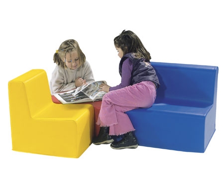 Made from high density foam with a CAL TB 117 fire retardant jersey-lined vinyl covers. Anti-slip base. Easy to clean with soapy water. Floor space: 48 x 33. Includes: 1 Sofa (ref: 858) 1 straight chair (ref: 857) 1 wedge pouffe (ref: 863).