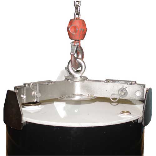 This Drum Lifter allows for the loading of Open or Closed Head Drums into Overpacks as the lifting arms are designed to not interfere with the overpack interior walls. It is constructed of premium 304 stainless steel providing long-lasting durability in corrosive environments such as Food Service and Clean Room applications. The drum lifter is ideal for use with steel or poly drums with at least a 3/16" chime. Lifter features 3-point contact lifting arms with limited rotation to minimize drum chime deflection when a loaded drum is lifted without a lid minimizing deformation of the drum. Simply raise lifter to engage arms automatically on drum rim to raise drum lower to floor and unfasten arms for removal. Lifting arms are adjustable to work with most 30 and 55 gallon drums. Features