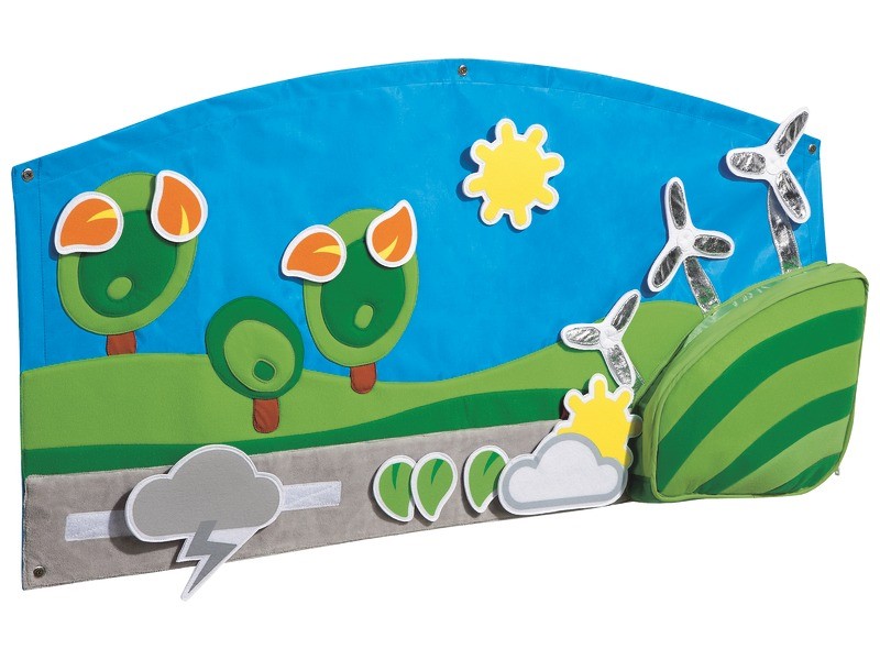 The child discovers the impact of the climate on nature. By opening the large pocket, the child will have access to all of the detachable (Cloth Tie) accessories.