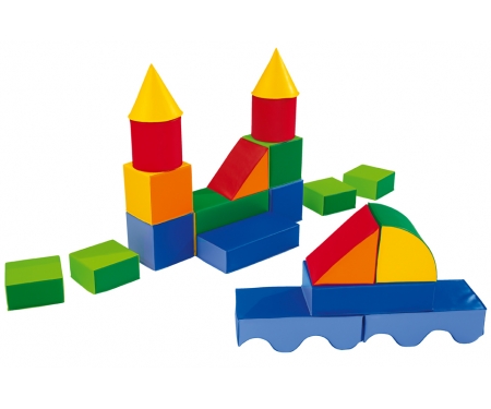 Dimensions when stored: Length 20- Width 28 1/4- Height 28 1/4. Consists of 20 blocks: 2 waves (6x20x10)1 large brick (10x20x10)2 bricks (10x20x5)4 cubes (10x10x10)4 half-cubes (5x10x10)2 cones ( 10x10)2 cylinders ( 10x10)2 t. From 9 months and older.